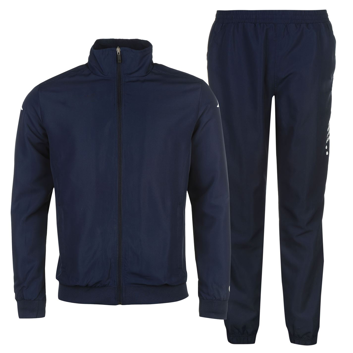 Get a great casual look with this Tracksuit, designed with a top and bottoms. The top comes with a full zip fastening, long sleeves with ribbed sleeve cuffs and a ribbed hem for a closer fit and two zip pockets. The bottoms feature an elasticated waistband with a drawstring fastening, elasticated ankle cuffs with zips and two pockets. Both pieces are crafted in a lightweight fabric with soft lining for a comfortable fit.